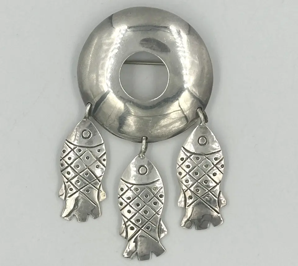 Emilia MIMI CASTILLO Mexico 925 Sterling Silver 3 Fish Brooch Pin Unique