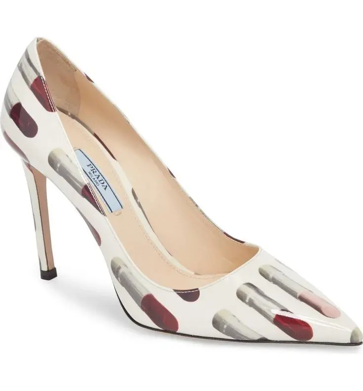 PRADA Patent Leather Lipstick Pumps 35 Ivory Multicolor Pointed Toe 5