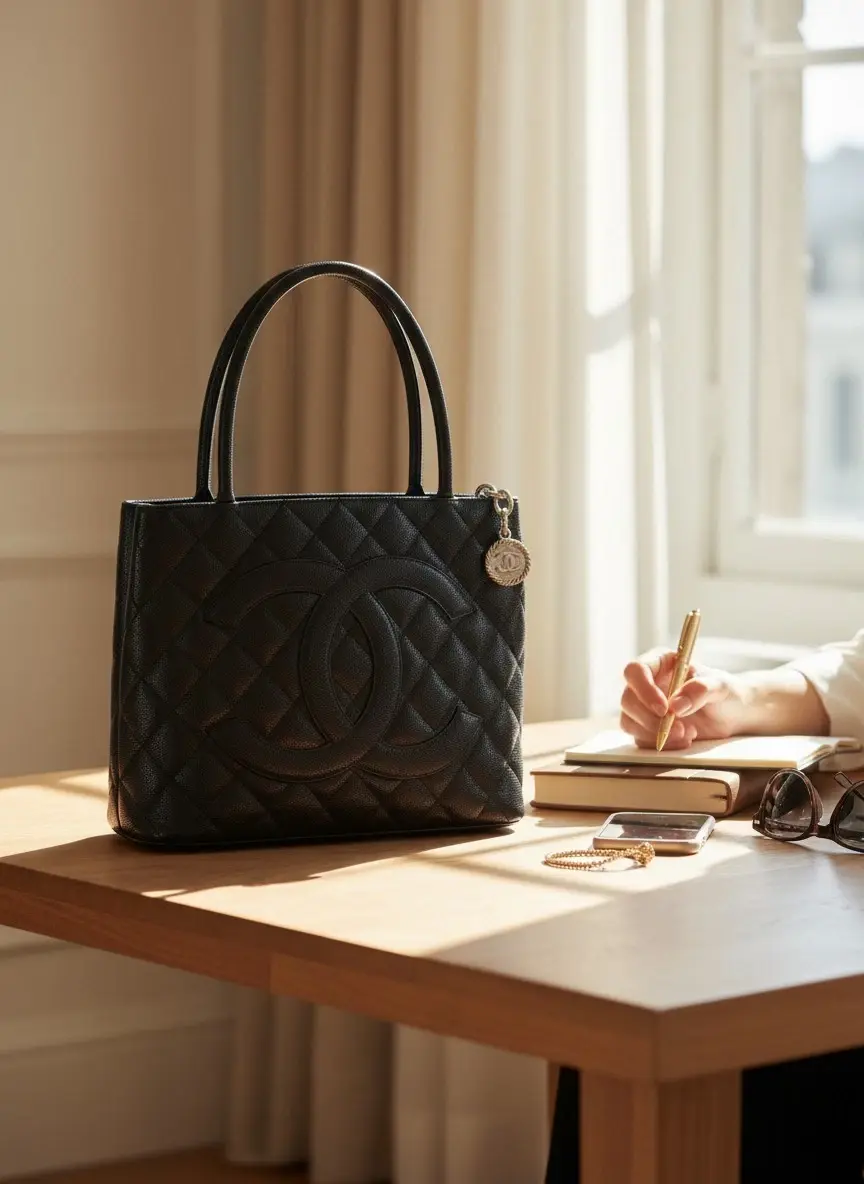 NEW CHANEL Caviar Medallion Tote Bag Black Calfskin Silver hardware Zip CC Logo