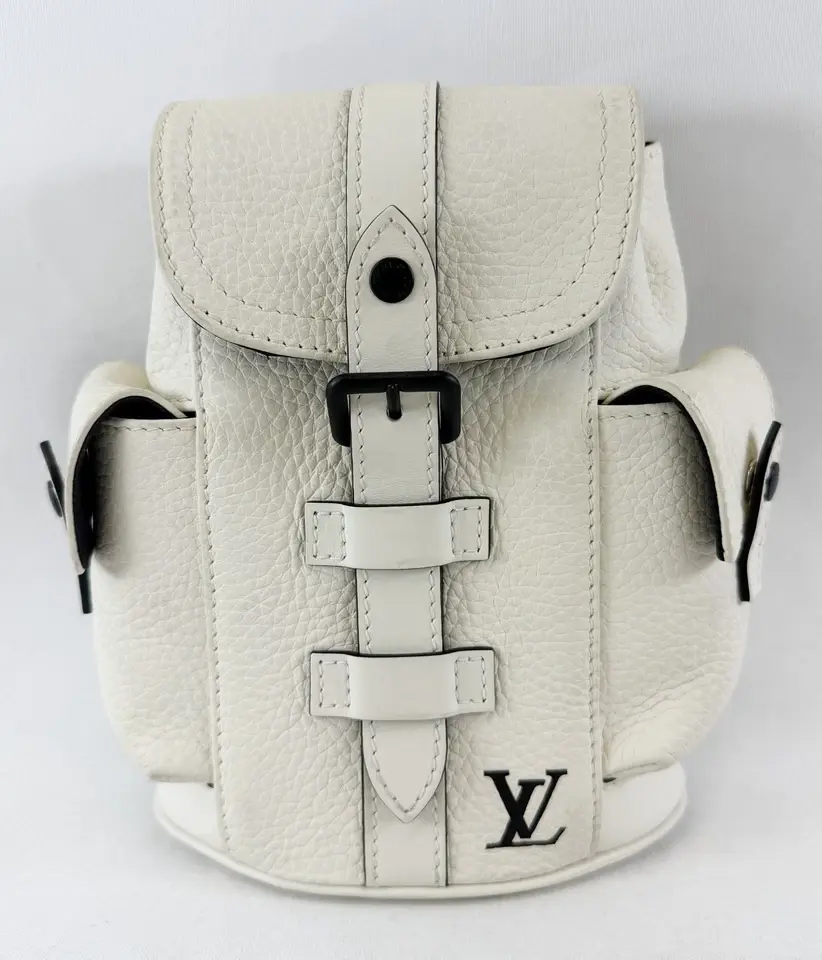 LOUIS VUITTON Nano Christopher Backpack White Taurillon Leather Black M58493