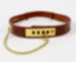 JUDITH LEIBER Crocodile Embossed Leather & Chain Belt Brown Turn Lock Vintage
