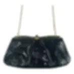 JUDITH LEIBER Lizard Leather Shoulder Bag Clutch Small Black Embellished