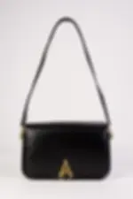 JUDITH LEIBER Shoulder Bag Small Black Leather Gold Hardware Onyx Lock
