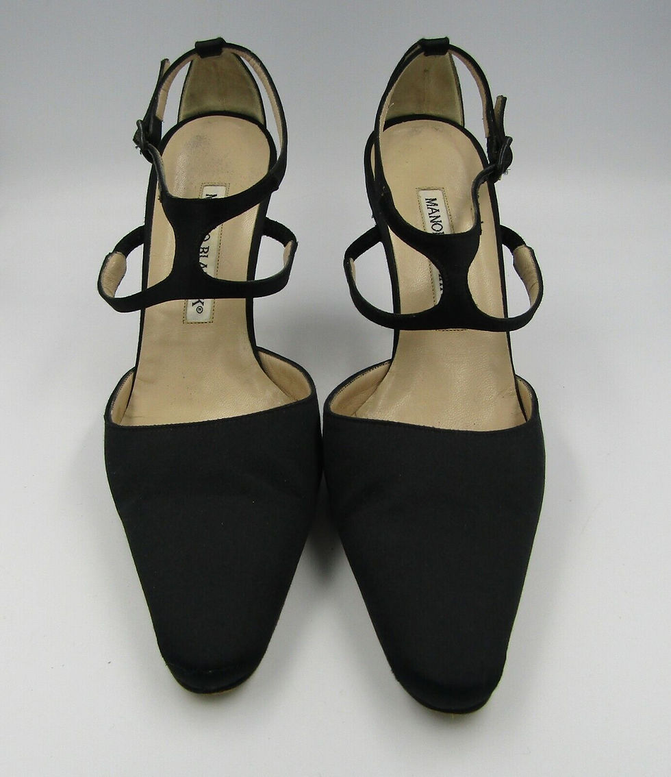 MANOLO BLAHNIK 36 6 Black Heels Pumps Satin Pointed Toe Strap Shoes
