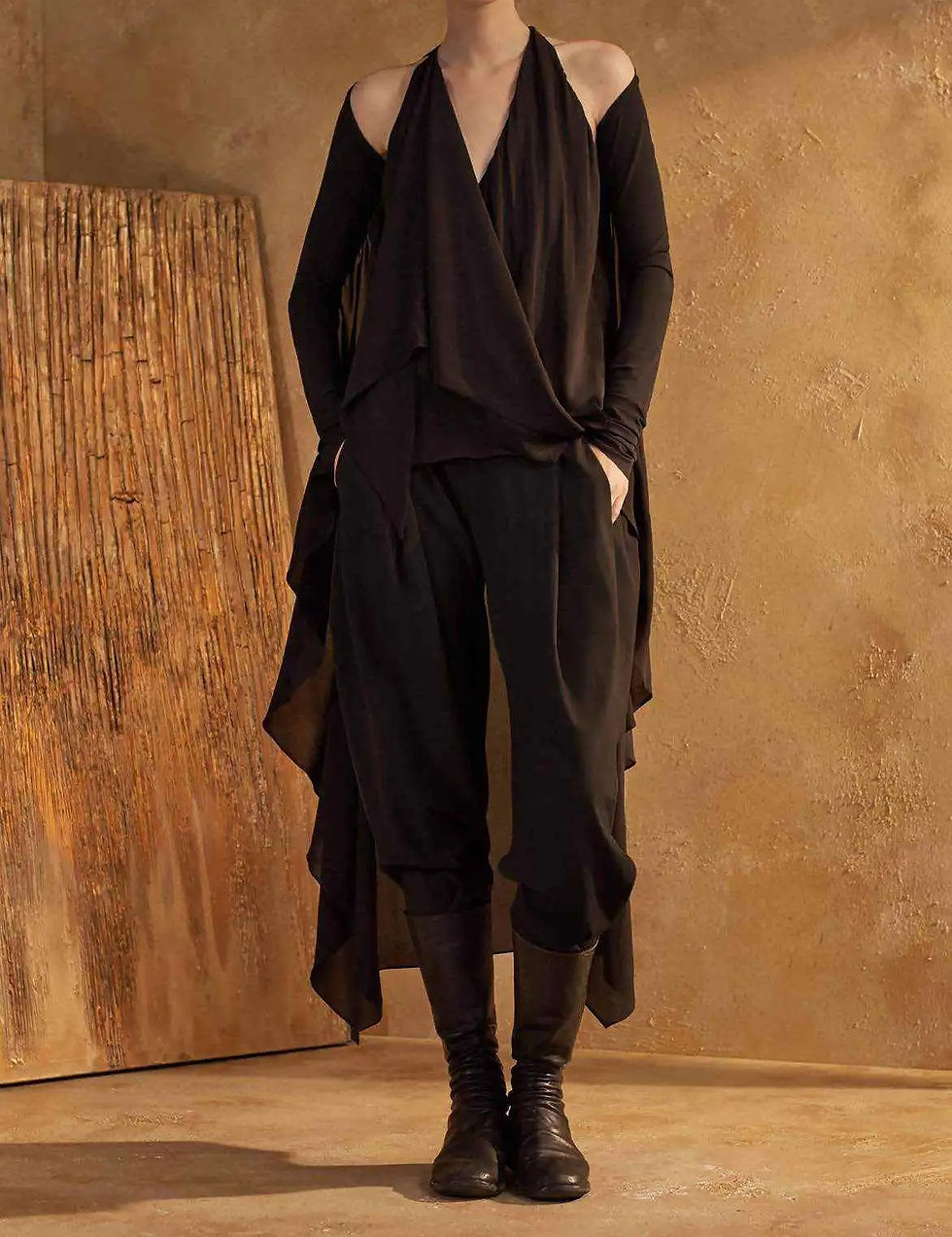 NWT URBAN ZEN Black Waterfall Jersey Stretchy Long Shrug Cape Small