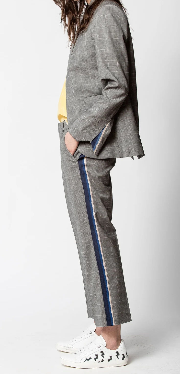 ZADIG & VOLTAIRE Posh Check Wool Pants 34 Grey Side Stripe Straight Leg