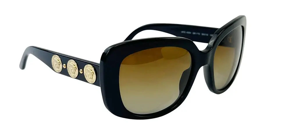 VERSACE Square Oversized Sunglasses 56-19-135 Black Gold Medusa Coin Detailing