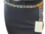 DESIGNER Distressed Leather Belt Black Stitching Fringe Bronze Cross Buckle NEW