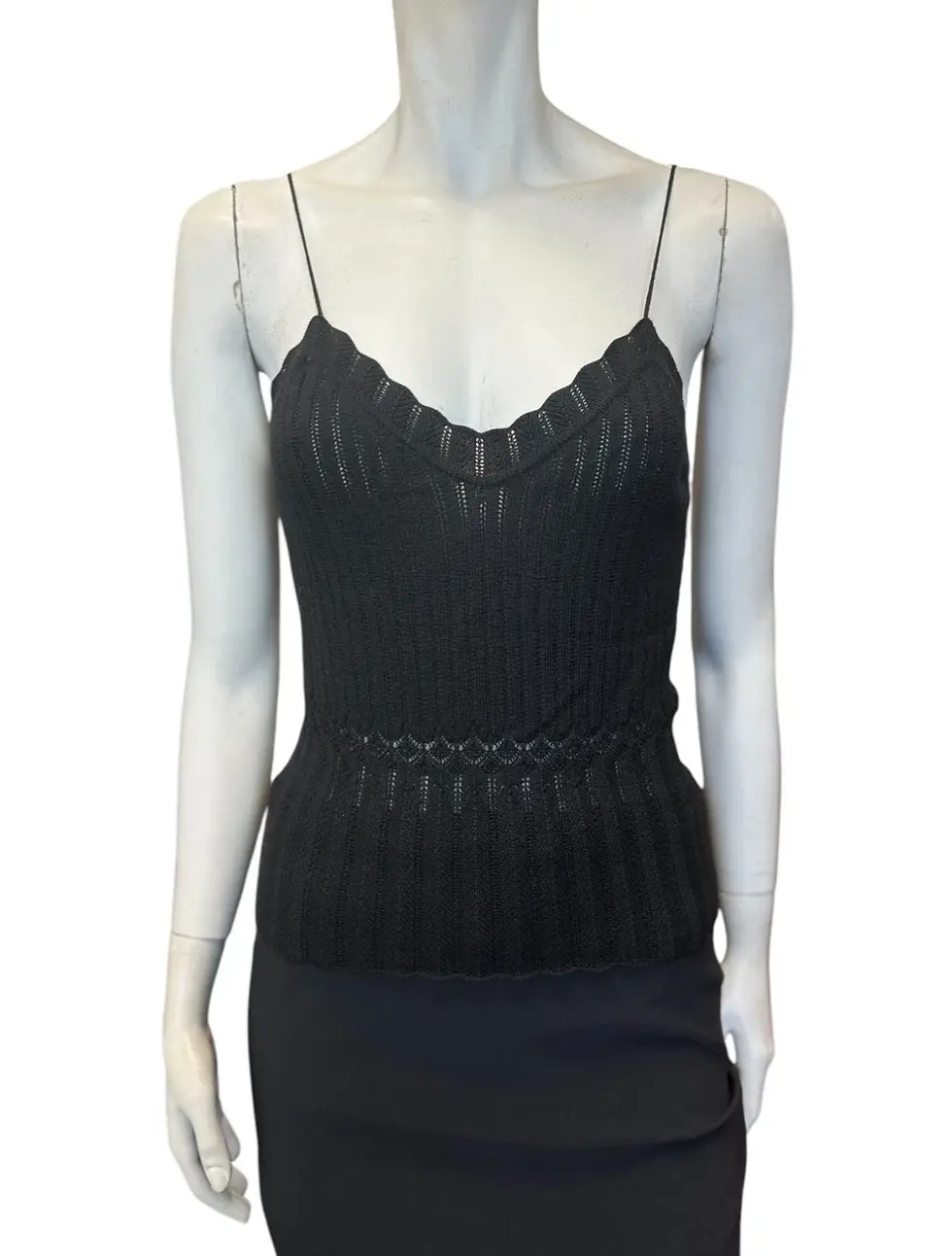 Vintage CHRISTIAN DIOR Wool Knit Spaghetti Strap Cami Large Black Scalloped 8