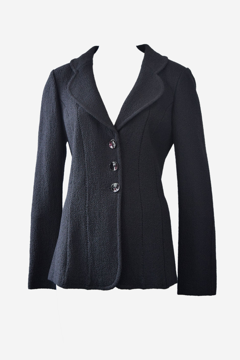 ST. JOHN Caviar Knit Jacket 8 Black Stitching Single Breasted Basic Classic
