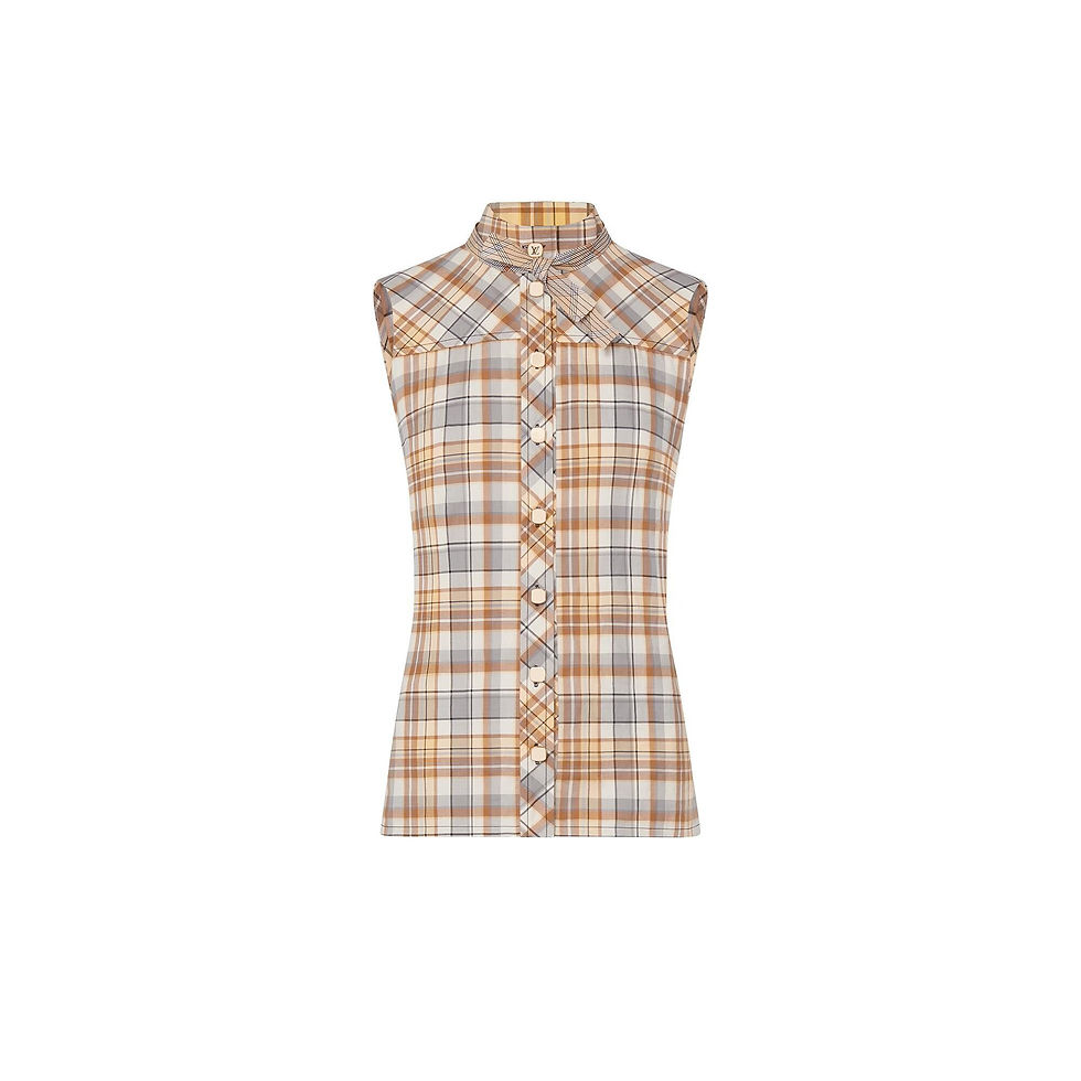 NWT LOUIS VUITTON Blouse Beige Grey White Plaid Sleeveless Shirt Collar Tie 40 8