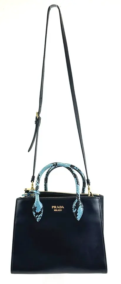 PRADA Paradigme Python Handle Tote Bag Black Blue Gold Safiano Leather Satchel